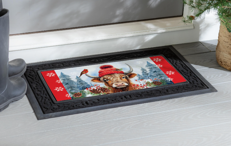 The mildew resistant mat is ideal for indoor or outdoor use and features a skid-resistant backing to help keep it in place.
