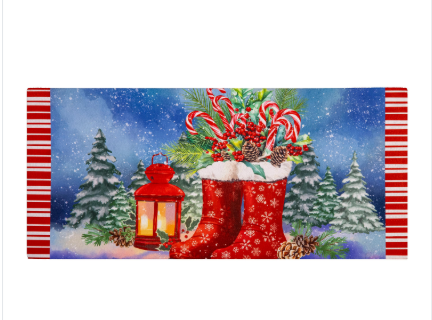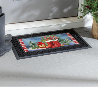The mildew resistant mat is ideal for indoor or outdoor use and features a skid-resistant backing to help keep it in place.