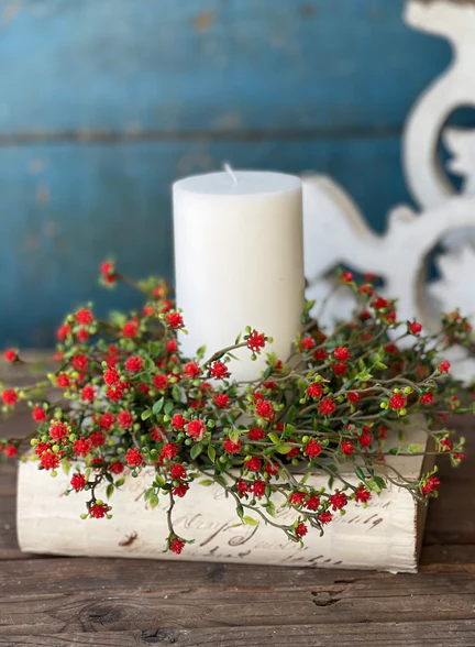 Petite buds with small sprays of leaves race along branching stems to create a collection that is full of charm.
