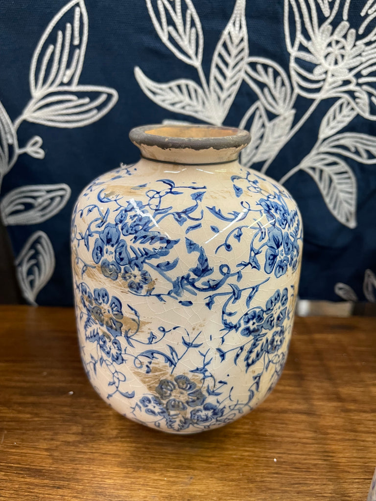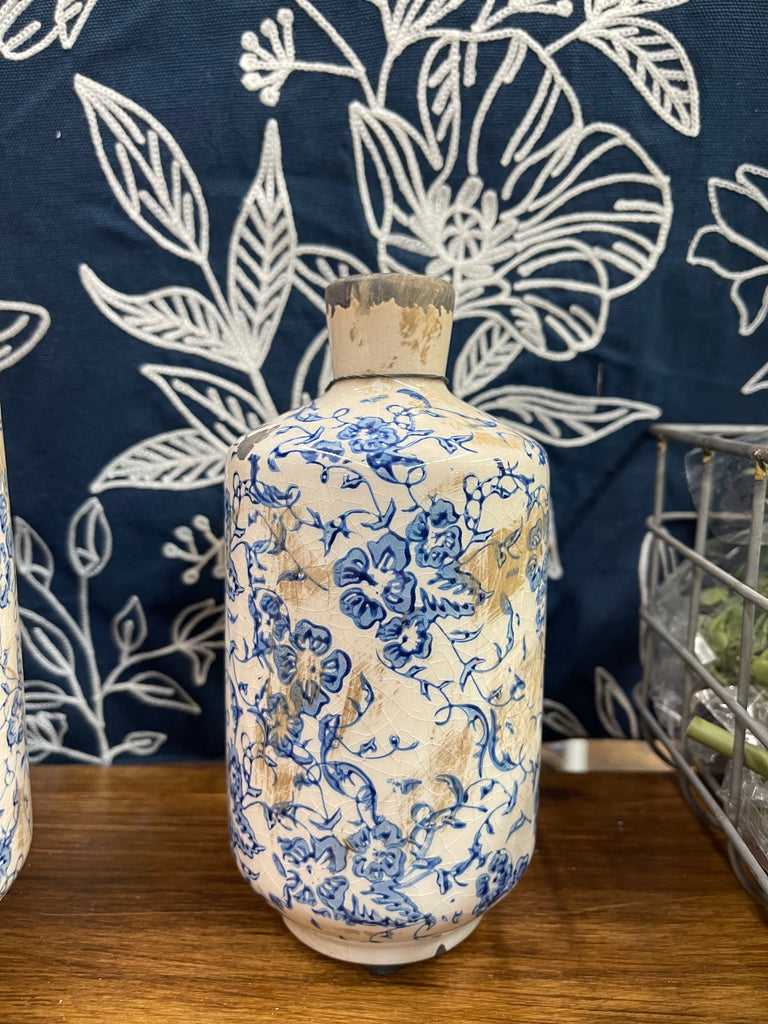 Blue/Cream Print Floral Vase (3 sizes)