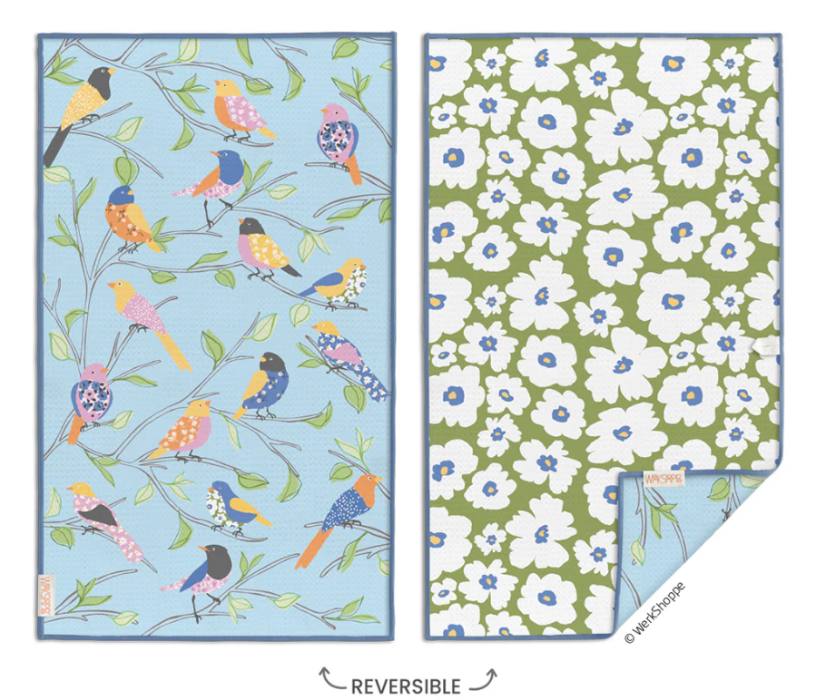 Optimized microfiber material blend is made from 6 recycled plastic water bottles - Set of 4 towels measuring 12.5" x 12.5", two of each pattern