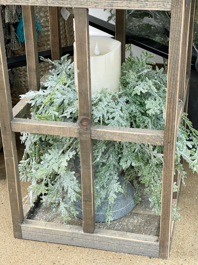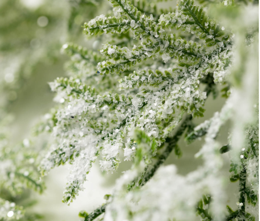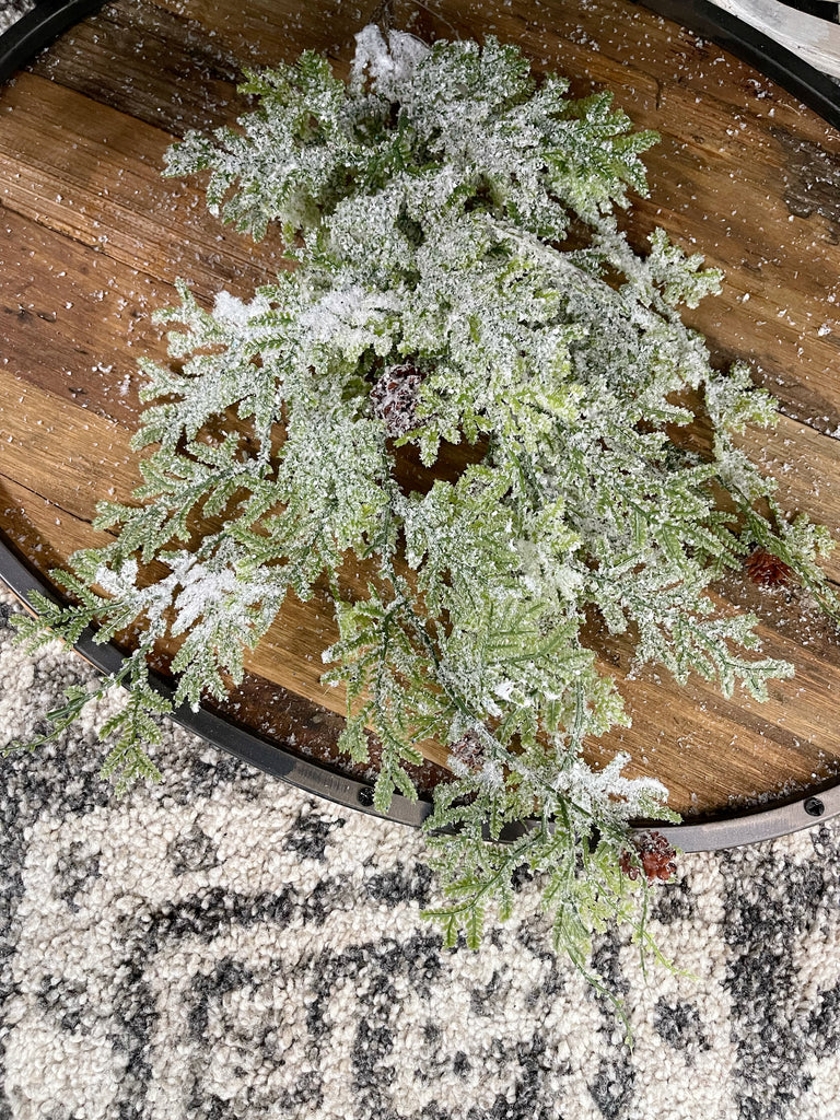 This soft to the touch simple greenery is the perfect base for adding decor to, or simply displaying as it is. The dusted snow covering gives the monochromatic branches a little texture and personality.